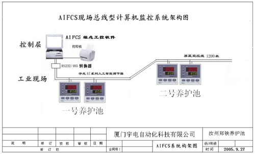 養(yǎng)護池溫度自動控制計算機監(jiān)控系統(tǒng)采用廈門宇光獨自開發(fā)的AI人工智能調(diào)節(jié)技術(shù)集合了PID調(diào)節(jié)和模糊控制技術(shù)優(yōu)點,實現(xiàn)了自整定/自適應(yīng)功能。及無超調(diào)無參調(diào)的精確,調(diào)節(jié)AI-808P30段程序型人工智能工業(yè)調(diào)節(jié)器(V7.0),組建AIFCS現(xiàn)場總線型計算機監(jiān)控系統(tǒng)。