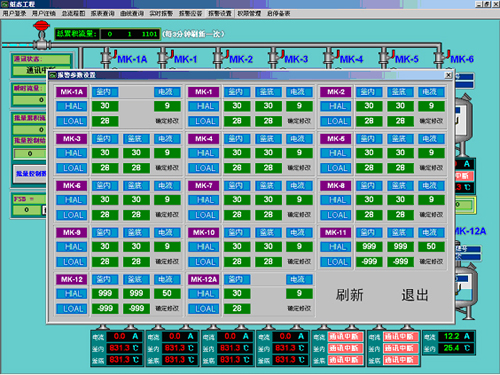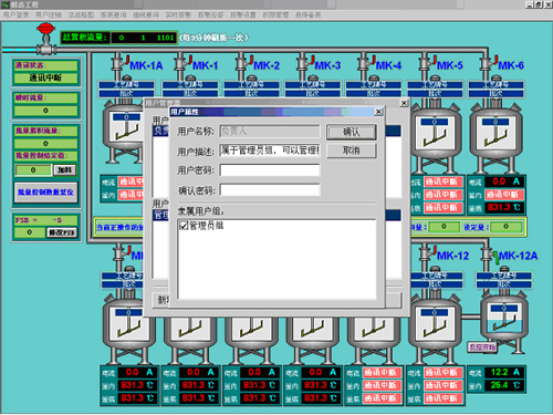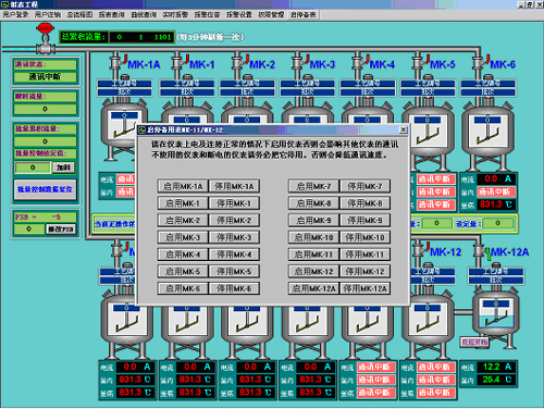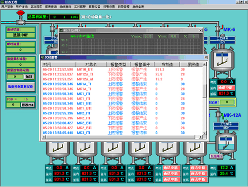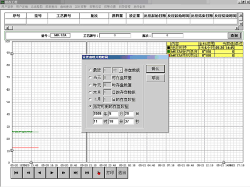 生產過程及物料狀態(tài)可完全由計算機生成實時曲線和報表進行監(jiān)測和控制,所有相關歷史數據都用ACCESS數據庫進行保存,有完善的歷史報表、曲線以便日后查詢。