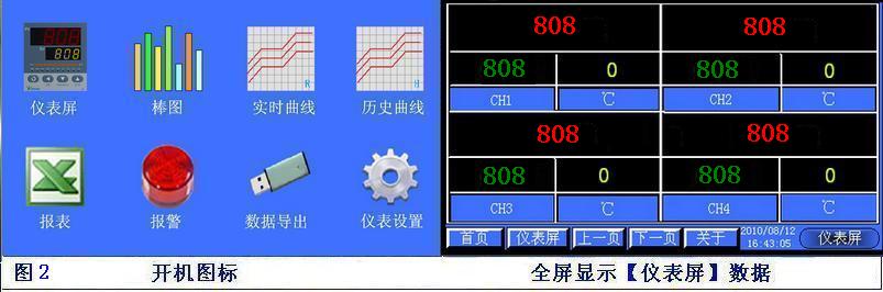 AI分體式無紙記錄儀增加新品,觸摸控制屏采用4.3寸TFT彩屏。開機(jī)圖標(biāo)式功能畫面;【主頁】圖標(biāo):【儀表屏】、【棒圖】、【實(shí)時曲線】、【歷史曲線】、【報表】、【報警】、【數(shù)據(jù)導(dǎo)出】、【儀表設(shè)置】1、2、4、6、8通道;數(shù)據(jù)轉(zhuǎn)存USB DEVICE;